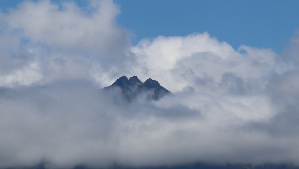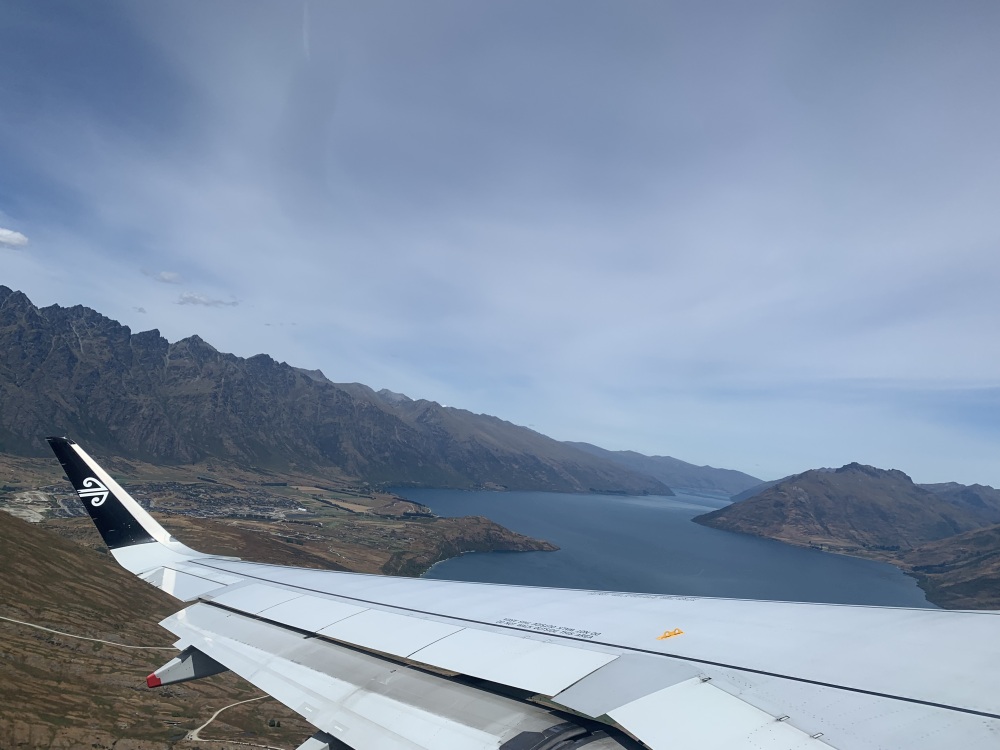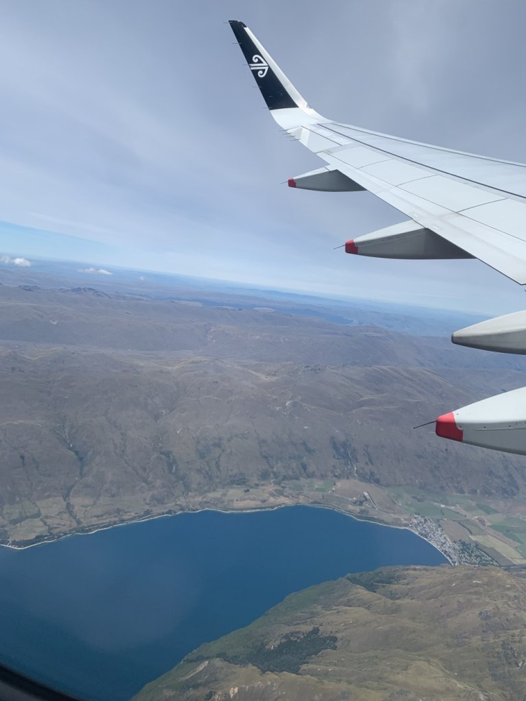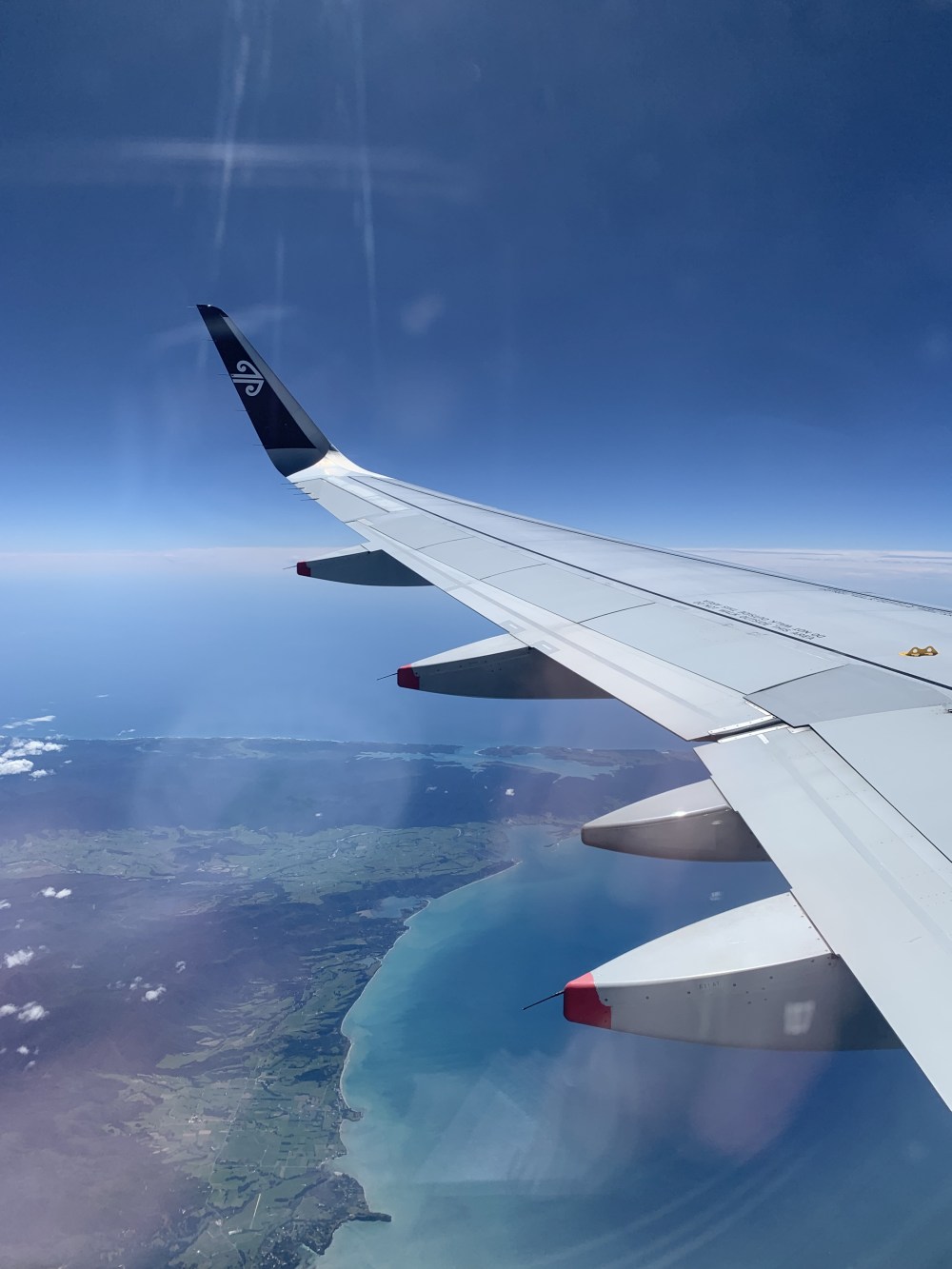 Skies that got thicker and thicker with cloud the further north we flew. We did manage to see Farewell Spit, and get the briefest of glimpses of Mount Taranaki’s peak poking through the clouds, but from then on, much of the ground was obscured. Not that I could see much from the middle seat, anyway.