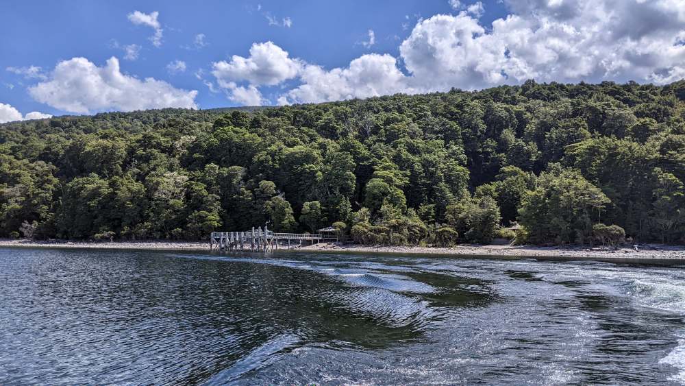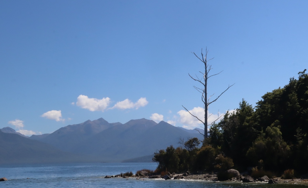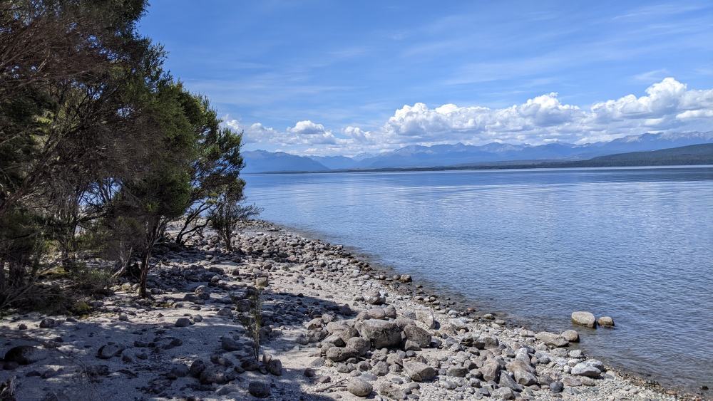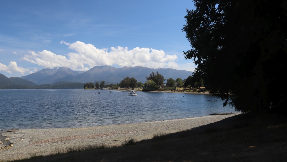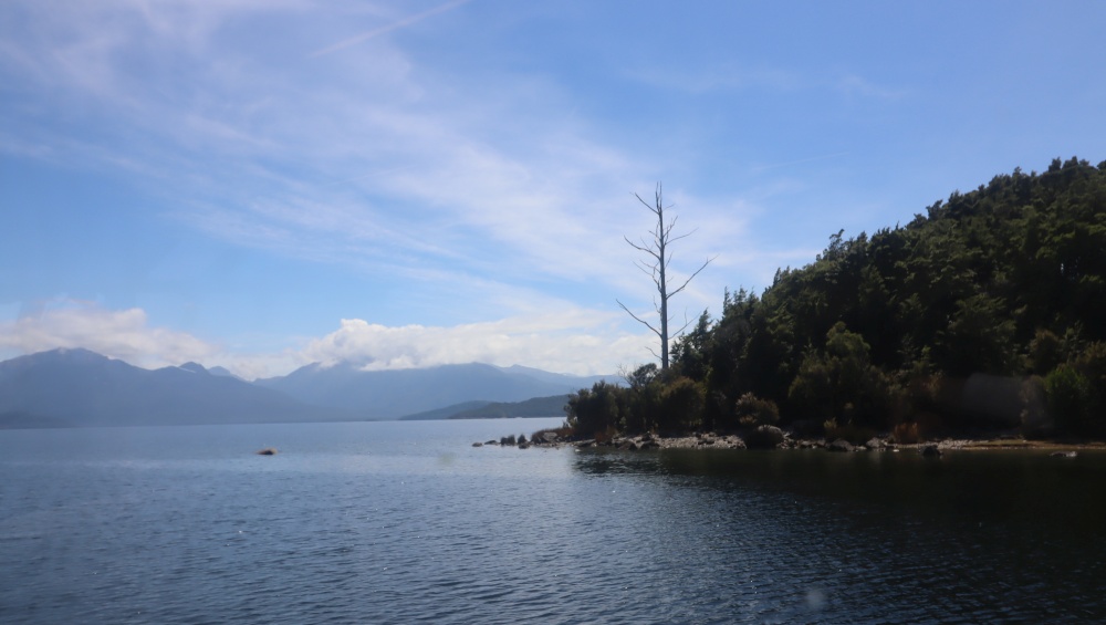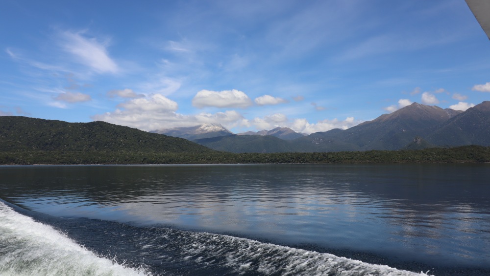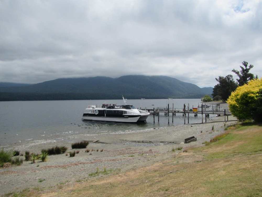 Finally, our minibus arrived, towing a luggage trailer. The driver got out, greeted us, and said he only had a booking for one. Pen offered to let me sit on her lap, but fortunately he had the spare seats, so I didn’t wind up walking. What had happened was that we’d booked this trip with Catch-A-Bus, and they’d arranged it from this drop off to Te Anau. At some point, the point that there was two of us had been missed. Pen’s just been checked the web site (so we can book with Catch-A-Bus to go from Queenstown to Kingston), and she says that it’s now saying that if you are going to make our journey, you have to book with Tracknet yourself – which definitely wasn’t on the web site when Pen made the booking. So, I think we’re responsible for some changes.