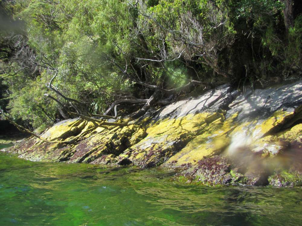 There were three crew members in kayaks with us. One at the front, one at the rear, and one floating around in the middle. I didn’t enjoy it that much at first as there was a bit of a chop and it made it more difficult to steer. (Pen was told by tail-end Charlie that if they’d realised it was this choppy, they would have found another bay.) As it was hard going with the chop pushing you around, I took the viewpoint that the closer to the front you were, the closer you were to reaching the end and getting out again, so I powered forward. Pen, for some reason, couldn’t get any speed up and managed to enjoy a private tour with tail-end Charlie.