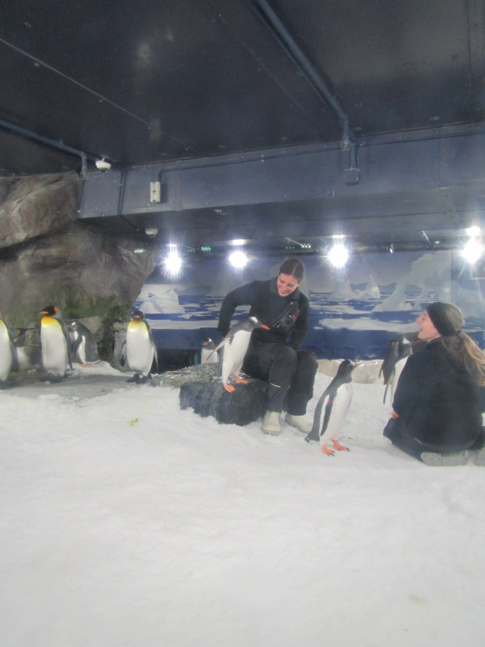 After that you had to walk through a representation of whiteout conditions to reach the penguins. You are walking on a perfectly stable, unmoving bridge that is surrounded by a rough, white, tunnel that revolves about you. It’s totally discombobulating, as your mind is telling you that the bridge is moving, not the walls about you. Your natural inclination is to head off to the right as if the bridge is tipping you that way.
