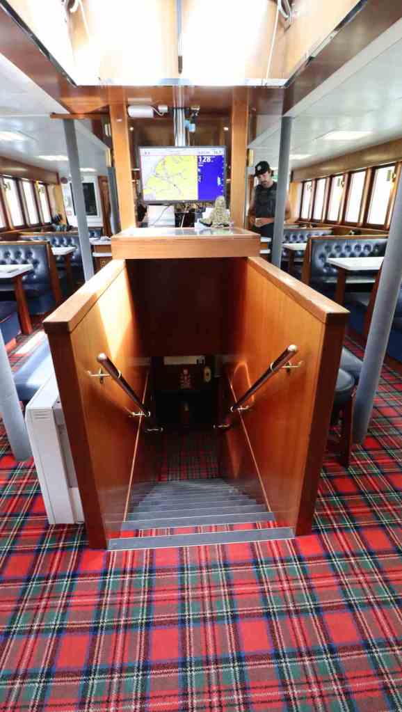 We waited in the holding cell until we were given permission to board; doing so by going up a long zig-zagged ramp, whilst the passengers at the rear of the craft had to climb stairs.
