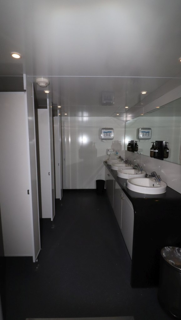 My shower was nice enough, once I worked out what setting to have it on. There were no hot and cold markings, so I had to guess, as well as reduce the power of the shower so it didn’t wet my shoes. The cubicle is good and long and they supply plenty of hooks, which, after previous communal wash facilities, was very much appreciated. But, the lady in the cubicle next door, put her shower onto full power, which must have been lovely for her, but left my legs getting splashed as I tried to stand at the far end of the cubicle and dry them.