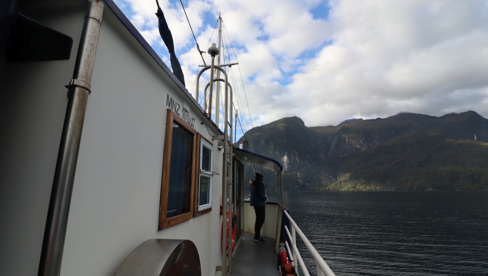 We sat in the middle of the boat as, in theory, that should have the least amount of sway. Not that we knew how rough Foveaux Strait was as we’d only seen the tide in Half Moon Bay. We started out and I felt like writing to our Transport Minister, Simeon Brown, that he shouldn’t worrying about the potholes in the roads and should, instead, be focusing on the potholes where Foveaux Strait met the bay.