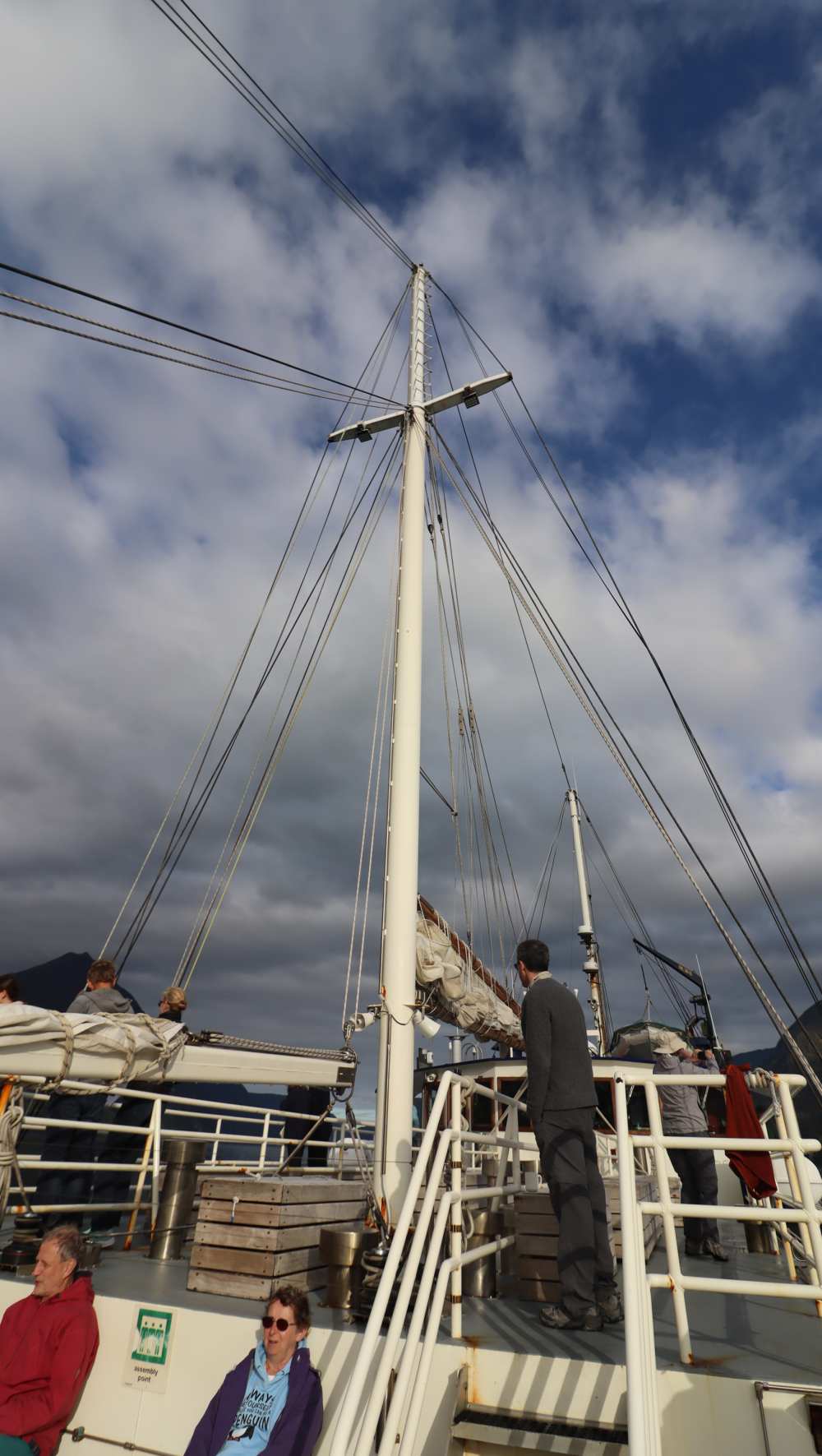 Then Pen and I sat up in the saloon, and typed up our records of the day, hoping that the clouds would stop closing in and we’d see the southern sky without any light pollution. There was a brief interruption in lights when the crew swapped over from the noisy, but more powerful generator, to the quieter, but less powerful (not enough power for showers) generator.
