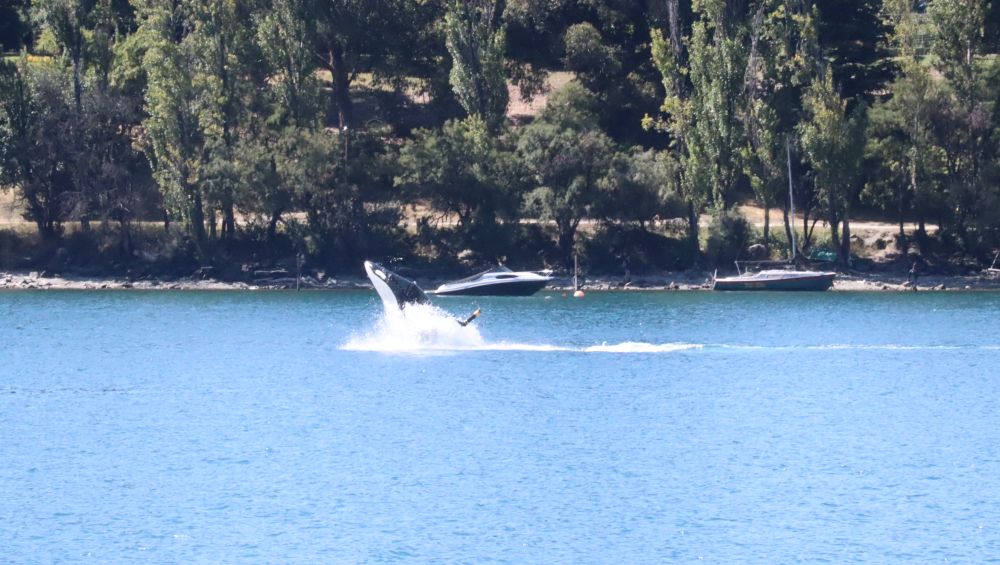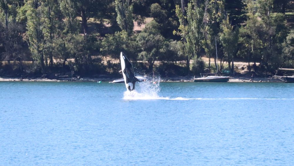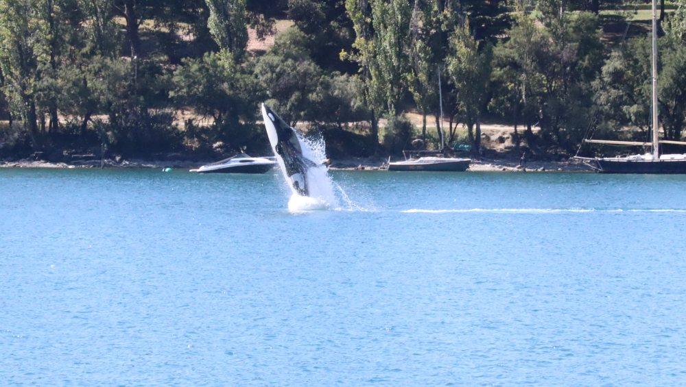 You’re inside what feels like a cross between a fighter jet and a torpedo. It’s skimming across the top of the lake at 80kph then it dives under the water, surrounding you in serene liquid blue. Next, your pilot points the shark at the sky and it blasts back out again, straight up into the air before shattering the lake into a million crystal shards on a screaming re-entry.