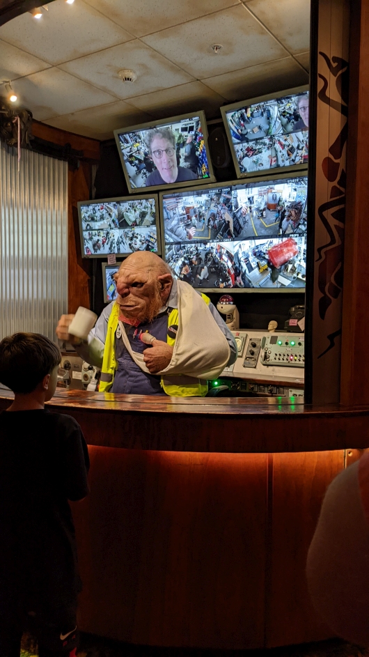 We were invited to walk through a bit of a horror set (or could take a shortcut and miss it all together.) I didn’t find this two scary until there was a sudden noise, explosion of light, and a creature appeared before you. That was heart-stopping stuff.