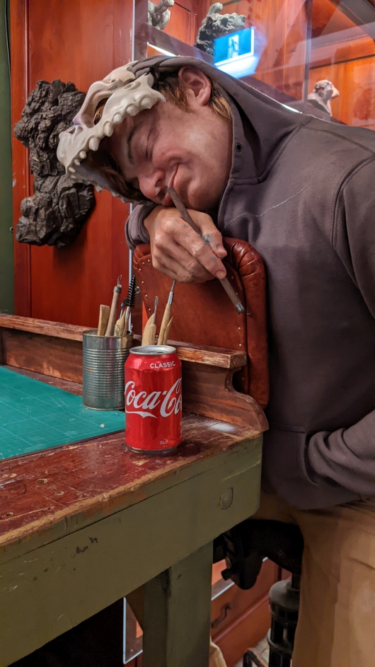 We were told that we were going to be interns of Wētā Workshop and one of the first things we had to do was do a stocktake of boxes in a room. We did this, and then was asked if we could find the hidden door.