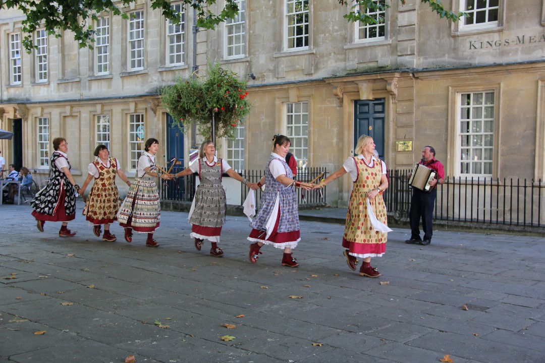 But he did say that they were going to have another dance so we sat in Kingsmead Square in Bath, ate our buns, and watched Morris Dancers under the gaze of a building made in 1735.