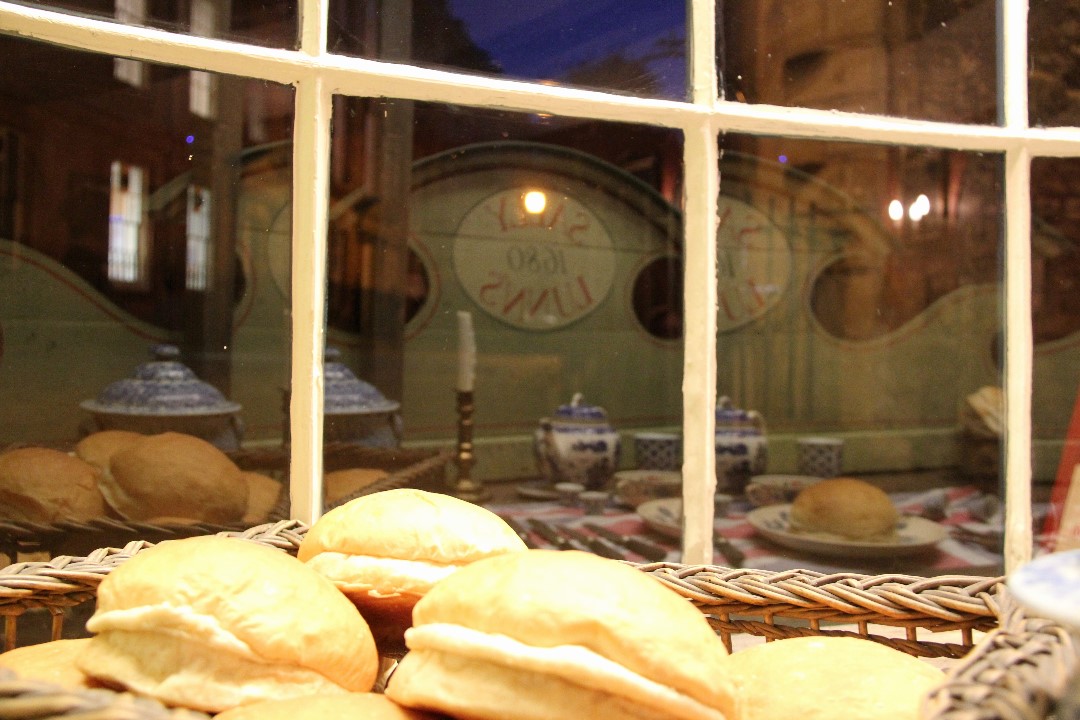 So where did we eat? At Sally Lunn’s. “The oldest house in Bath and home of the famous Sally Lunn bun.” Which isn’t necessarily covered in icing sugar and coconut and shoplifted from P ‘n S. (Family joke there. A distant relative used to visit us and bring a Sally Lunn. We read in the paper later that she got done for shoplifting.)