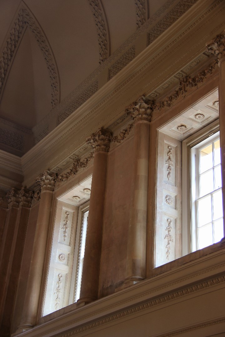 One room with a balcony at one end (if you know your movies Keira Knightly stood on it for one of her films) had been damaged in WWII. Bath, not being a military town, was considered safe from aerial raids, but Hitler decided to strike at Britain’s confidence and hit sites of historic and cultural importance. An incendiary bomb hit this room and the great heat discoloured the marble.