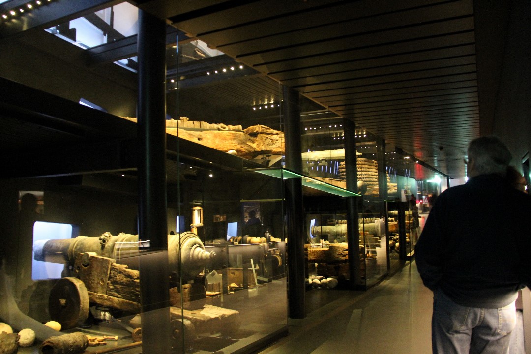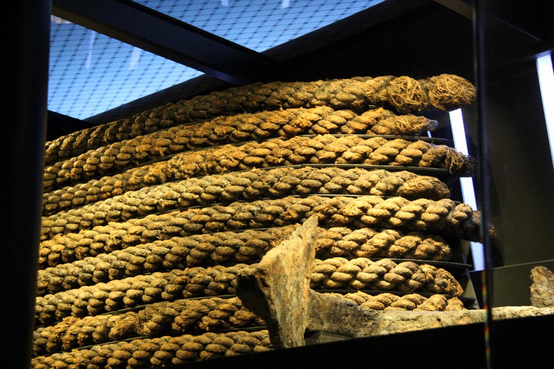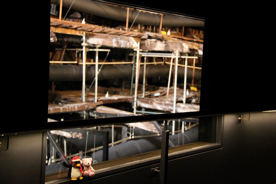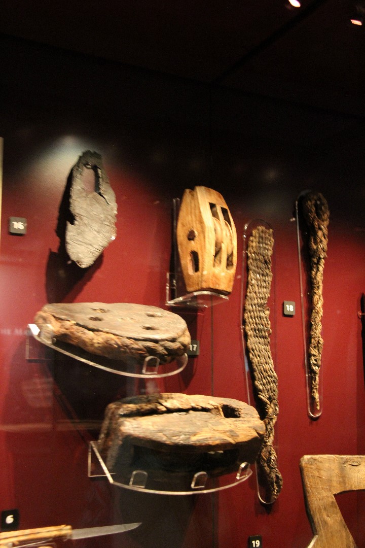 The museum is set out so that the various items recovered are on the same deck level as the actual ship. In time, when the preservation is completed, the dividing wall between the two will be removed and what is left will be an approximation of what was on the ship.