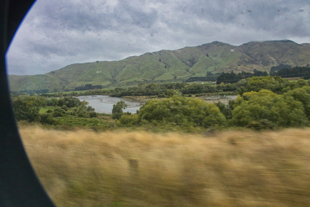The service now has helpful TV screens in the ceiling, so you can see occasional snippets of information. Like, the fastest speed that we were travelling at that I’ve seen displayed was 92 km/hr. Now, before you start saying that that’s proof why New Zealand should be concentrating on roads and forgetting about rail when the 3’6” gauge track clearly can’t match the speed of a vehicle on the open road; there are technologies that will enable trains on narrow gauges to go much faster than this. (Think Australia’s tilt trains.) What we don’t have is the political will, and desire to reduce greenhouse gases, to do so. And, (and I’ve just learnt this), the 3’6” was good for economies of scale, and the most practical for getting through mountain passes.
