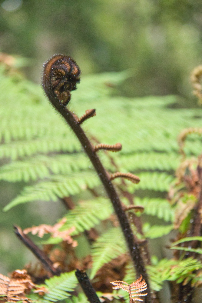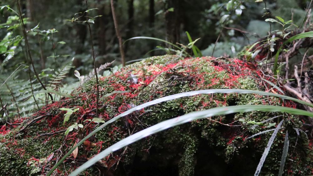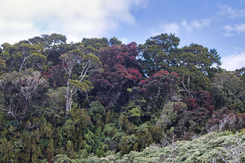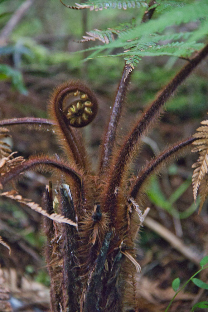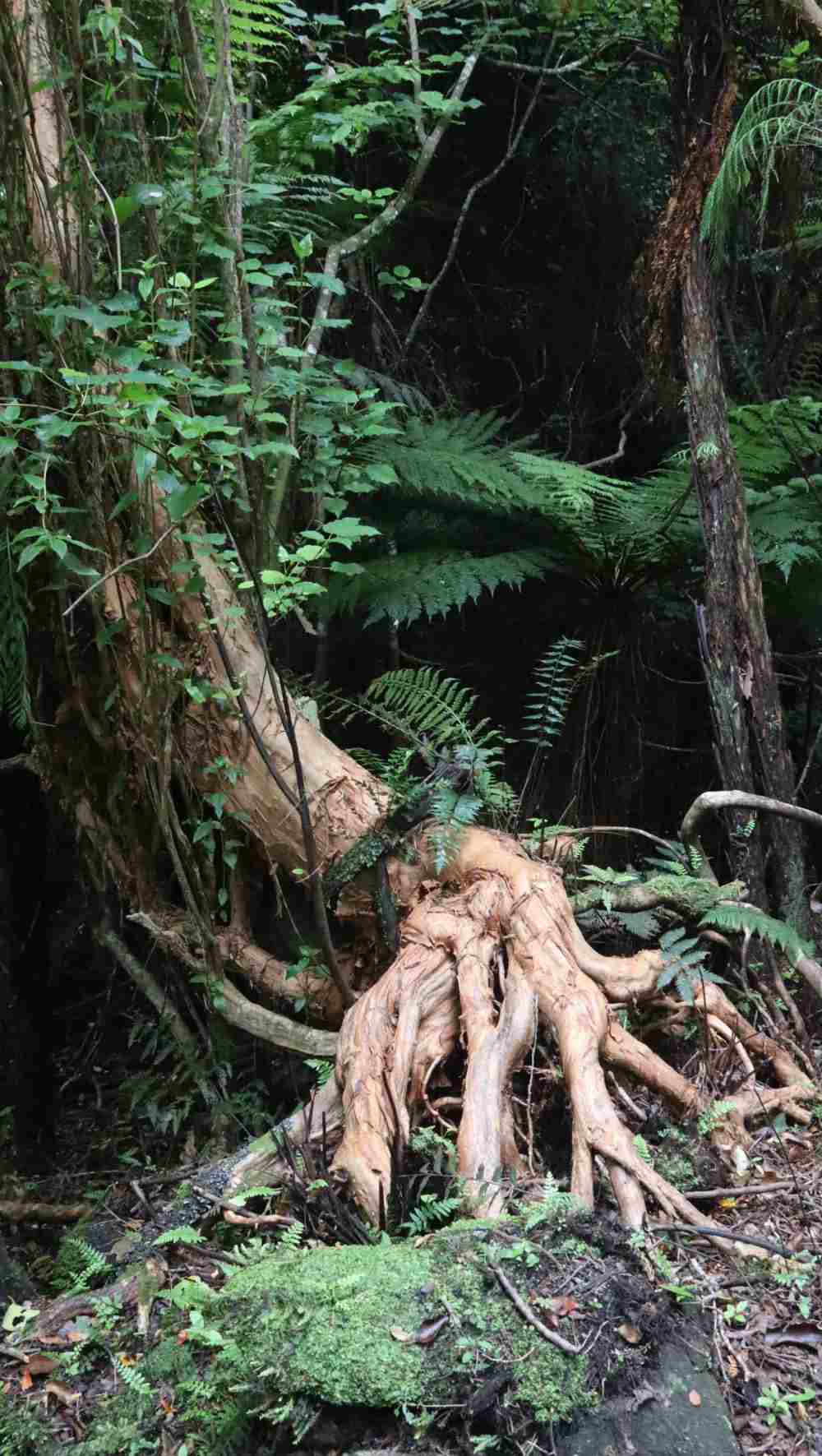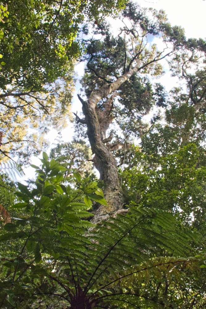 As we continued to walk through, Carly would point out various plants and birds of interest. The principal podocarp trees there were the Miro with its hammer-hewn bark and black ink; the Tōtara that tended to get hollowed out; and the Rimu whose bark looks like a “topical” map. And when you looked at a rimu, you could well imagine that it was embossed with a topographical map.