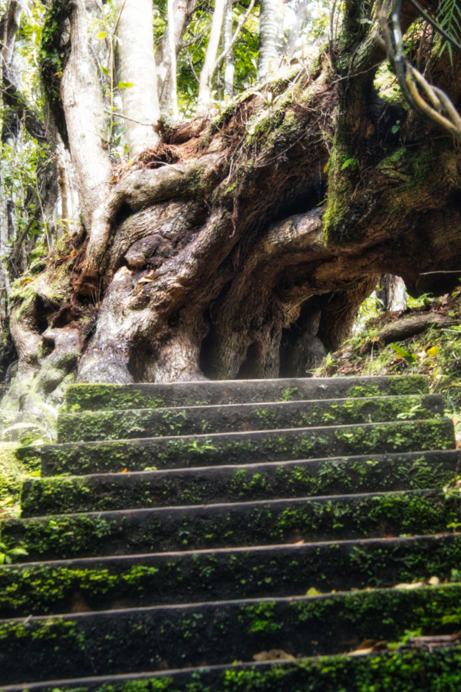 The forest on Ulva Island has, unlike Stewart Island, never been milled. So we were walking through first generation vegetation. Carly said that if an adult male can get his arms around a rimu tree, then the tree was less than 400 years old. There were a lot of unhuggable trees. There were also a lot of gnarly trees, some of which had been ripped by Kākā, some of which had rotted, some of which had fallen over and kept growing, and some of which had just managed to get intertwined with other plants.