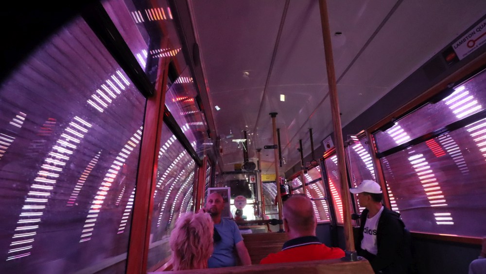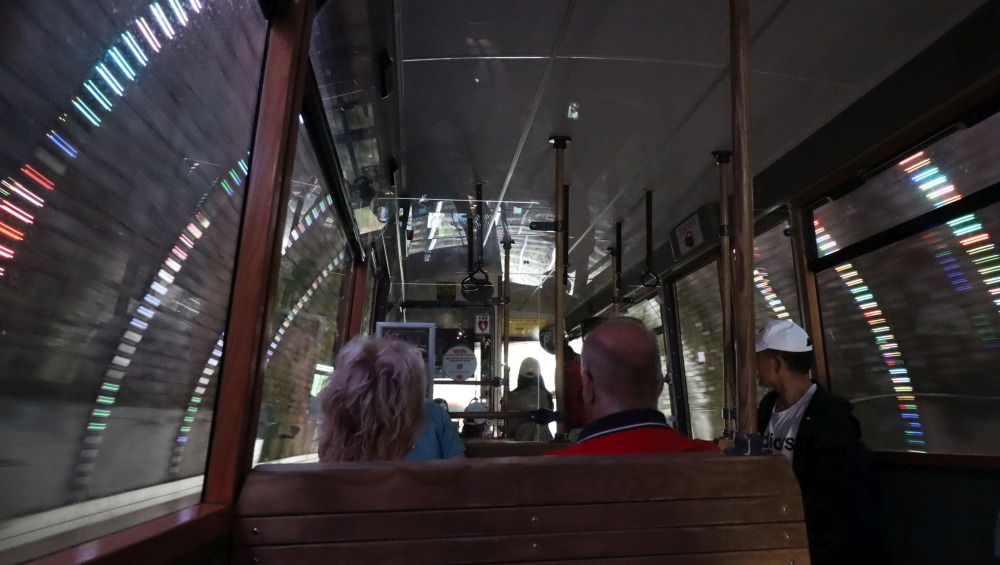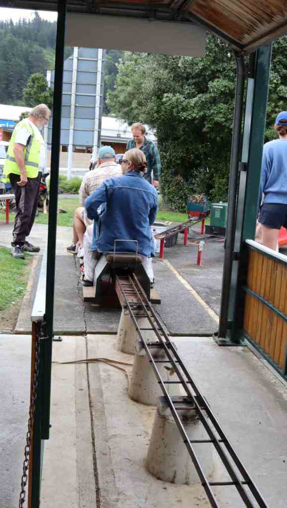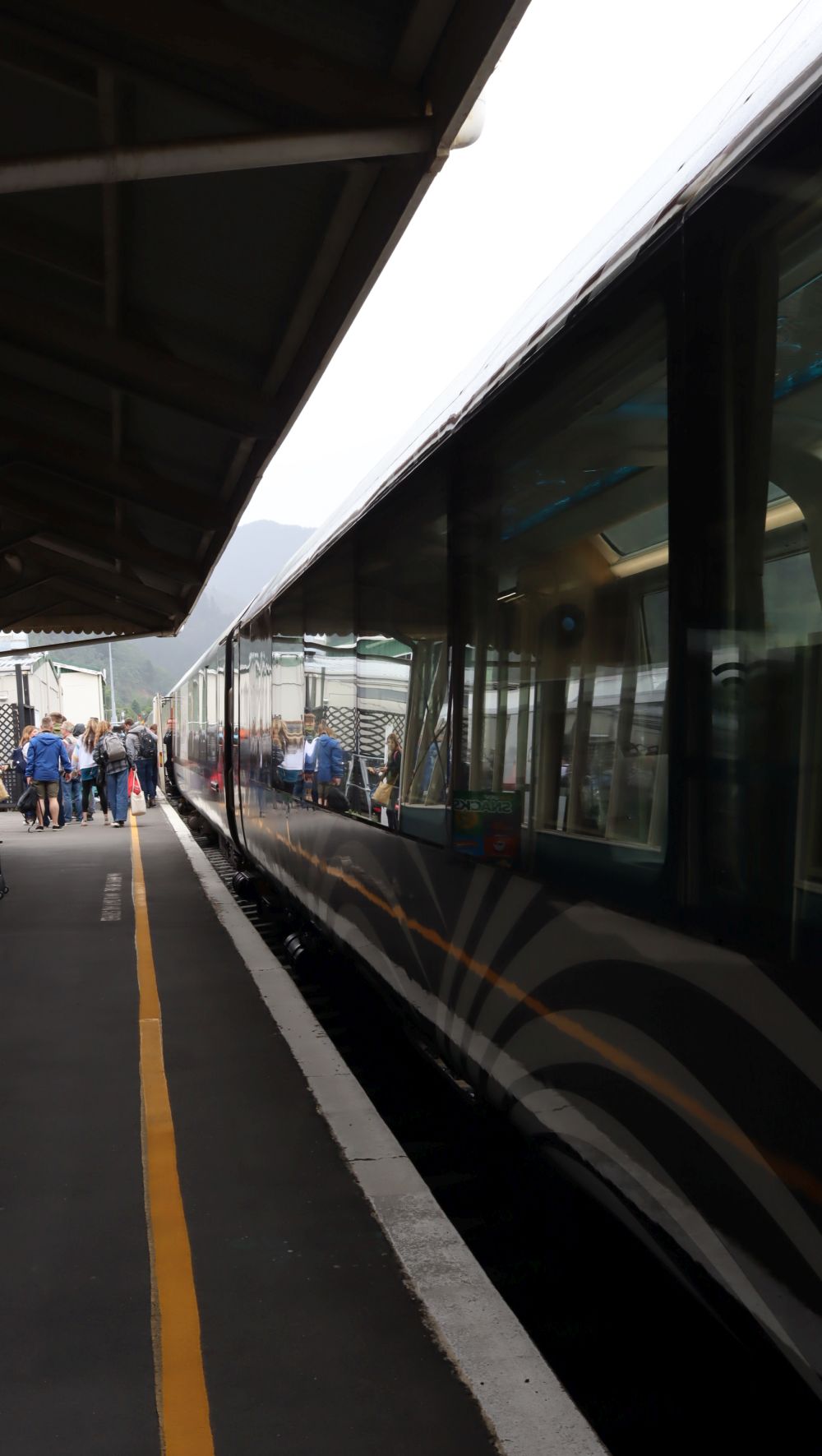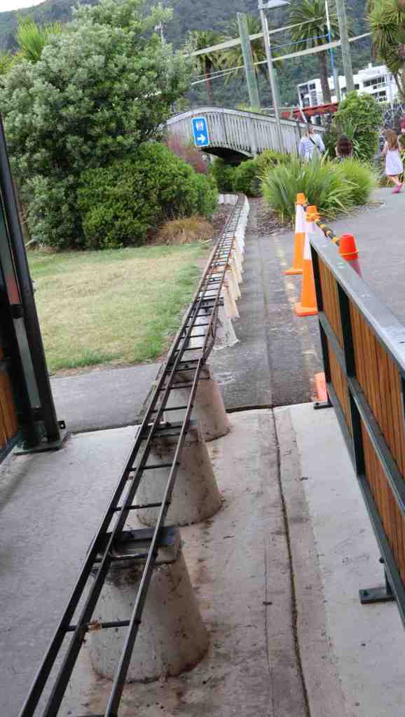 The service now has helpful TV screens in the ceiling, so you can see occasional snippets of information. Like, the fastest speed that we were travelling at that I’ve seen displayed was 92 km/hr. Now, before you start saying that that’s proof why New Zealand should be concentrating on roads and forgetting about rail when the 3’6” gauge track clearly can’t match the speed of a vehicle on the open road; there are technologies that will enable trains on narrow gauges to go much faster than this. (Think Australia’s tilt trains.) What we don’t have is the political will, and desire to reduce greenhouse gases, to do so. And, (and I’ve just learnt this), the 3’6” was good for economies of scale, and the most practical for getting through mountain passes.