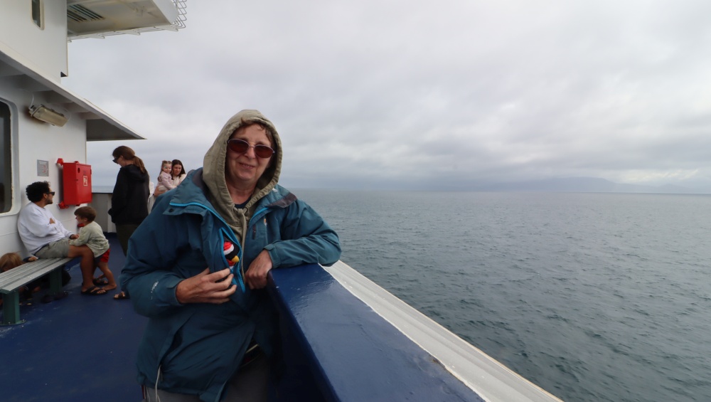 Pen was still Kaikōura T-Shirt hunting and she found a T-Shirt she liked and a “tie-dyed” hoodie with “Peace, Love, Whales” on it that she also liked. After a bit of hemming and hawing, she bought both.