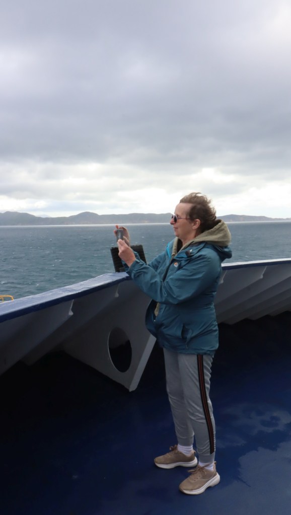 I was glad that I was wearing my new raincoat and waterproof over trousers when we got to the Whaleway Station. (Yes, that the railway station is where Whale Watch Kaikōura is based and that is what they’ve called it.) But my shoes were soaked. And there was nothing I could do about it.