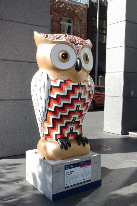 Whirikoka (Strength): meshes broad-ranging references from traditional Maori weaving, European tapestries, to modernist geometries and DNA sequencing, to the pixilation of digital images. Larkin’s attraction to repetition is paralleled by her fascination with the notion of ‘the other’ in opposing binary pairings such as indigenous/colonist, science/art, male/female or cultural traditions and cutting-edge technology.