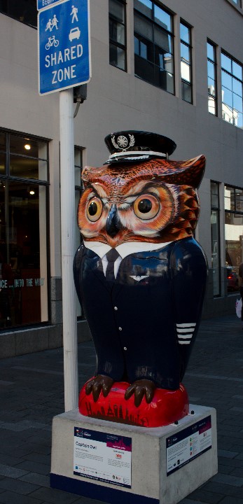 Captain Owl: This owl is looking smart and getting ready to go places! Inspired by concepts of natural flight and man made travel. Owls can fly, but this owl can really fly! Preparing to travel higher and further than any owl before it!