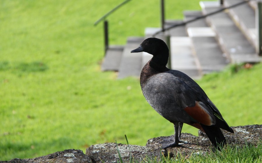 Male Shelduck that didn’t fly away as his mate was on the other side of the wall he was standing on.