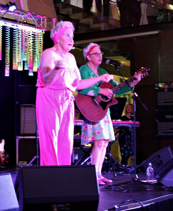 Camp Mother twirls her imaginary poi as Camp Leader plays the guitar. (The poi had been left at home.)